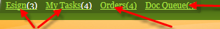 | QuickNav Font Color | Font for links at top, like MyTasks, DocQueue, etc. | ![]() The numbers in () parenthesis for E-Sign and My Tasks are hard-coded and can only be changed by MIE. |